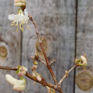 Le Chèvrefeuille d’hiver (Lonicera fragrantissima) est un arbuste caduc de la famille des Caprifoliacées, originaire de Chine. Il est apprécié pour son feuillage vert décoratif et ses petites fleurs blanches très parfumées qui apparaissent en hiver, attirant pollinisateurs.