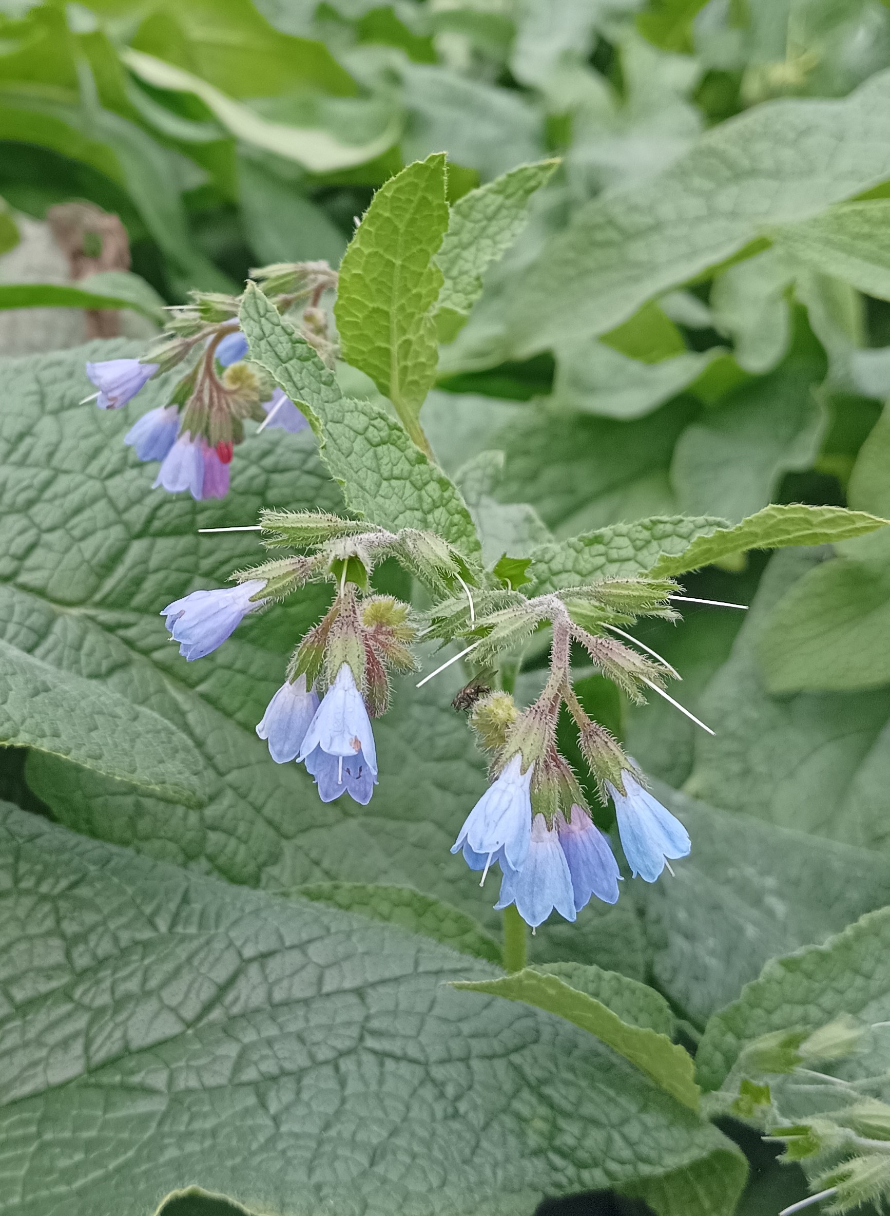 La consoude du Caucase (Symphytum caucasicum) est une plante vivace de la famille des Boraginacées, originaire des régions montagneuses du Caucase. Elle est appréciée pour son feuillage large et vert foncé et ses fleurs en clochettes violet-bleu qui apparaissent au printemps et en été. Rustique et facile à cultiver, elle est idéale pour les massifs, bordures ou en tant que plante couvre-sol, et elle est également utilisée en jardinage pour enrichir le sol en matière organique.