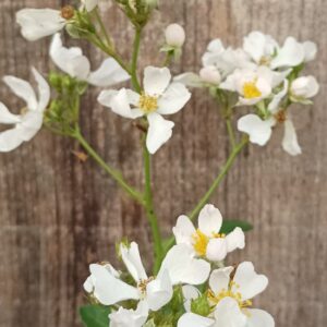 Le rosier ‘Ange Blanc’ est un arbuste vivace de la famille des Rosacées, apprécié pour sa multitude de petites fleurs blanches légèrement parfumées.